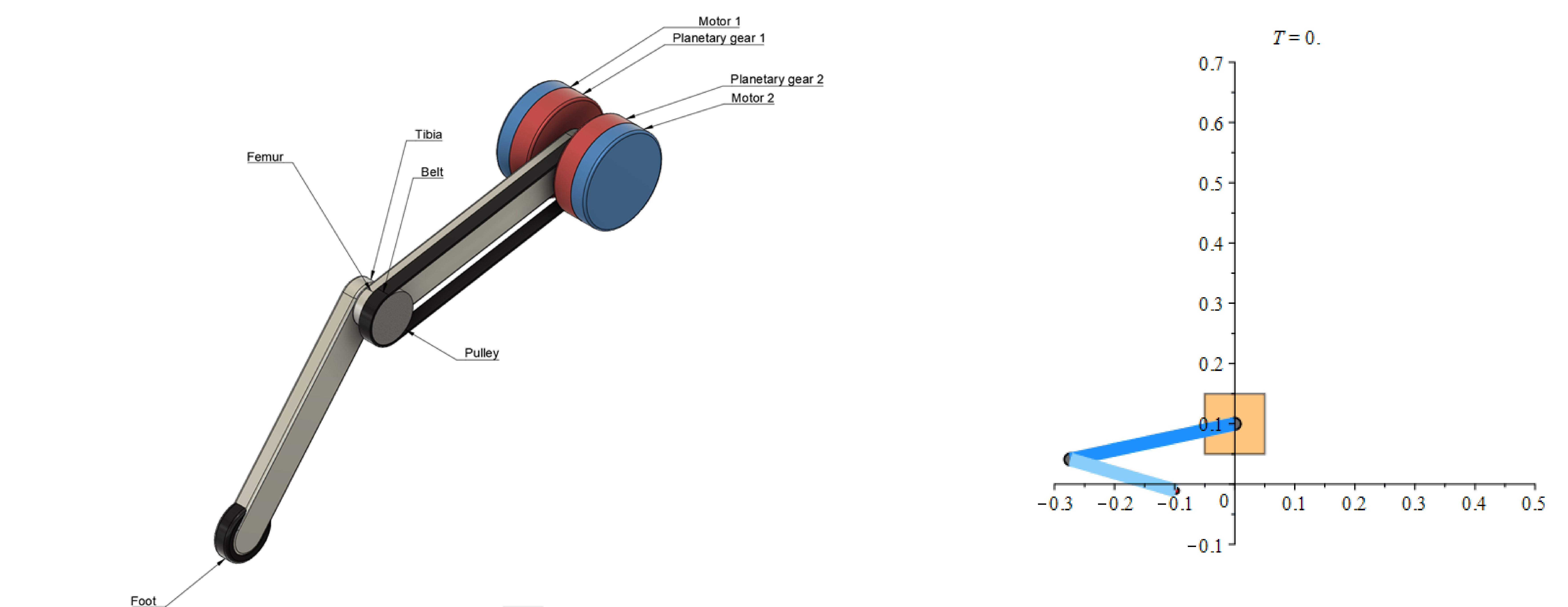 Subsequently, a dynamics analysis delved into the forces, torques, and accelerations experienced by the leg during movements such as drops and jumps, common in quadruped locomotion. This phase provided insights into the leg's stability and performance under varying conditions.